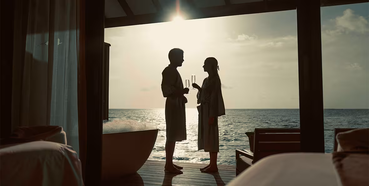 Tu estancia incluye el exclusivo régimen Premium All Inclusive, con restaurantes de autor, bares frente a la playa, bebidas internacionales, minibar repuesto a diario y experiencias gourmet diseñadas para disfrutar sin preocupaciones. Desde el primer momento, todo está organizado: vuelos internacionales desde España, traslados en lancha rápida y seguro de viaje.
